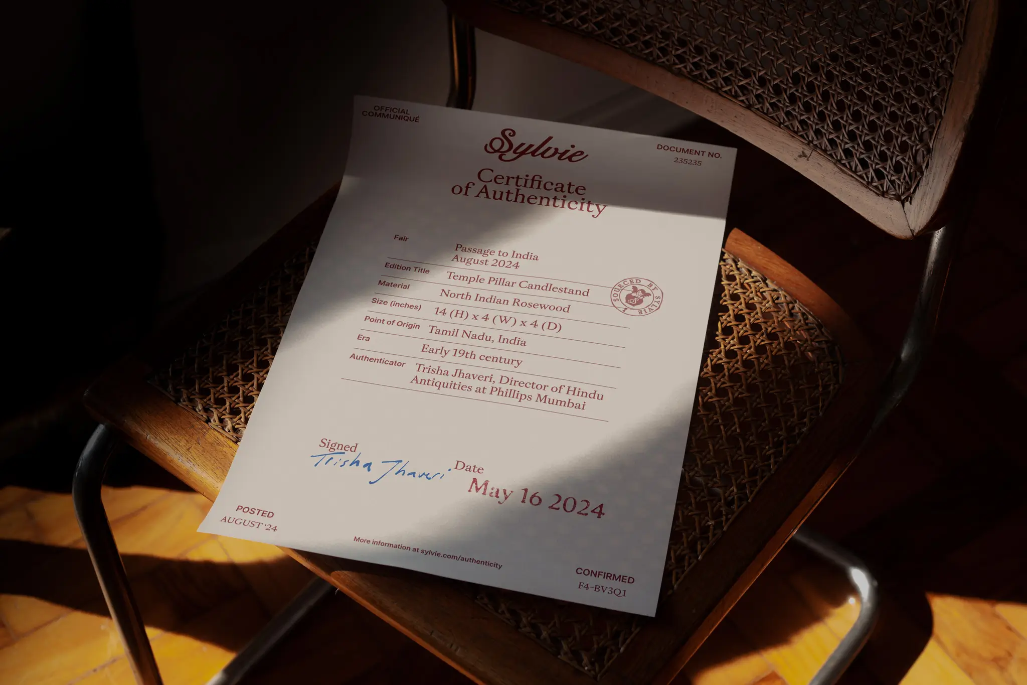 Reinforcing the magical feeling of the perfect find, Sylvie’s identity is embodied by a cherub who travels the world sourcing exquisite pieces to send back home. Rendered in a playful, old-world aesthetic reminiscent of vintage hotel branding, the system features a set of graphic signifiers including a seal of authenticity, skeleton key, and suite of ornate frames for housing content.