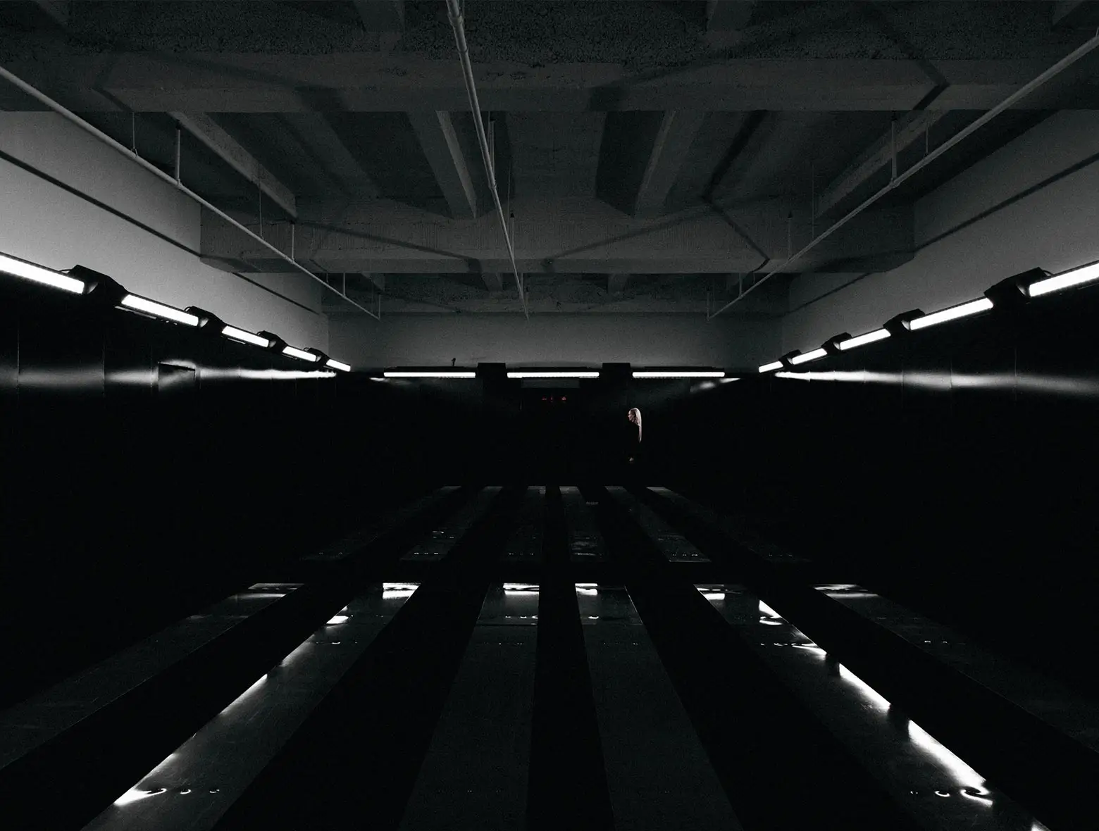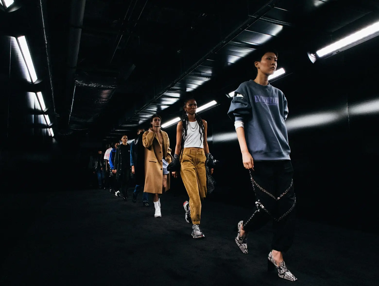 As the show opened, guests were welcomed down to the basement - a dark, red room where jet black walls transported them to the other side of the American hustle. A complex lighting system accompanied by a low rumbling bass soundtrack ending in Rick Ross's "Hustlin'" brought the show to an emphatic close.