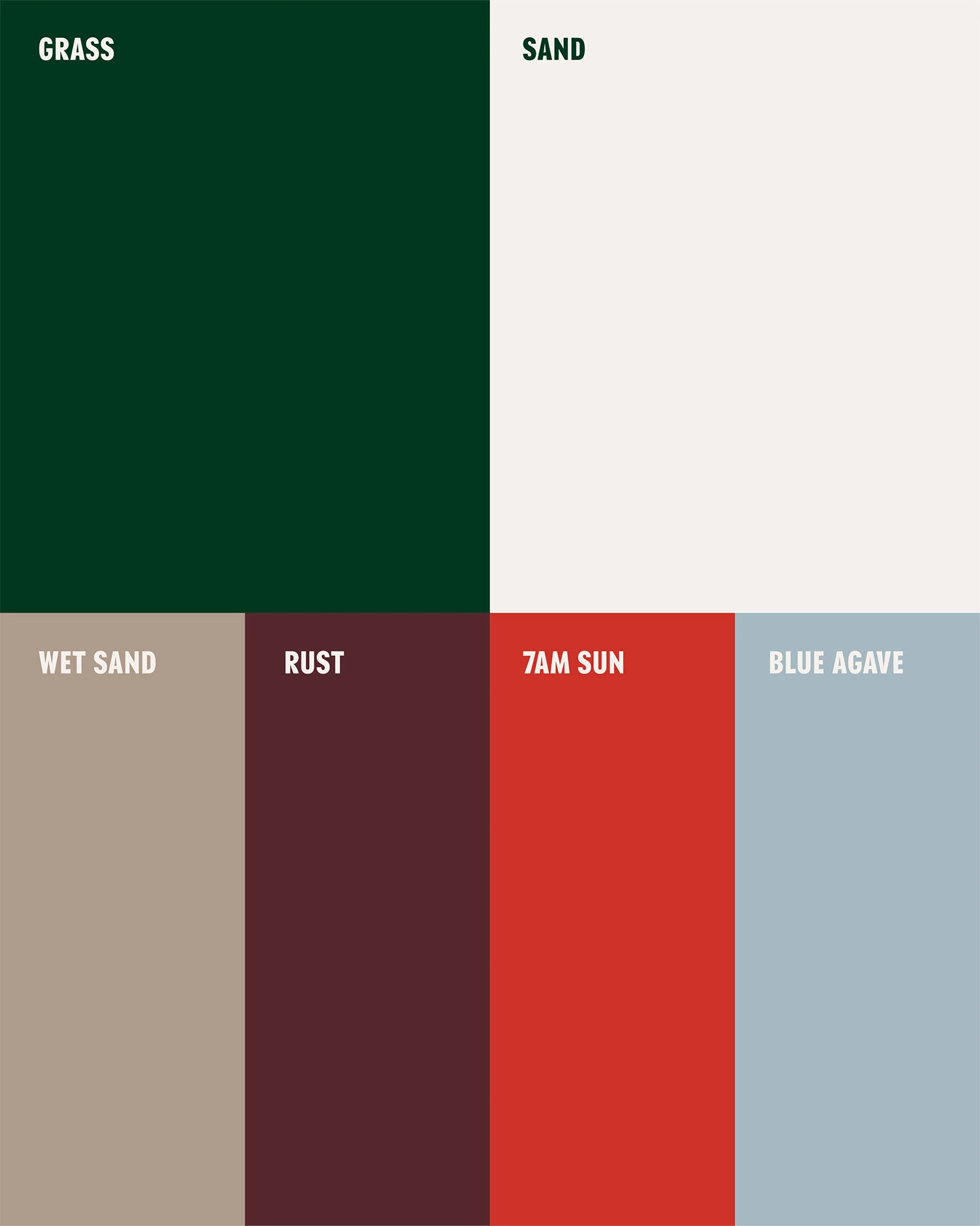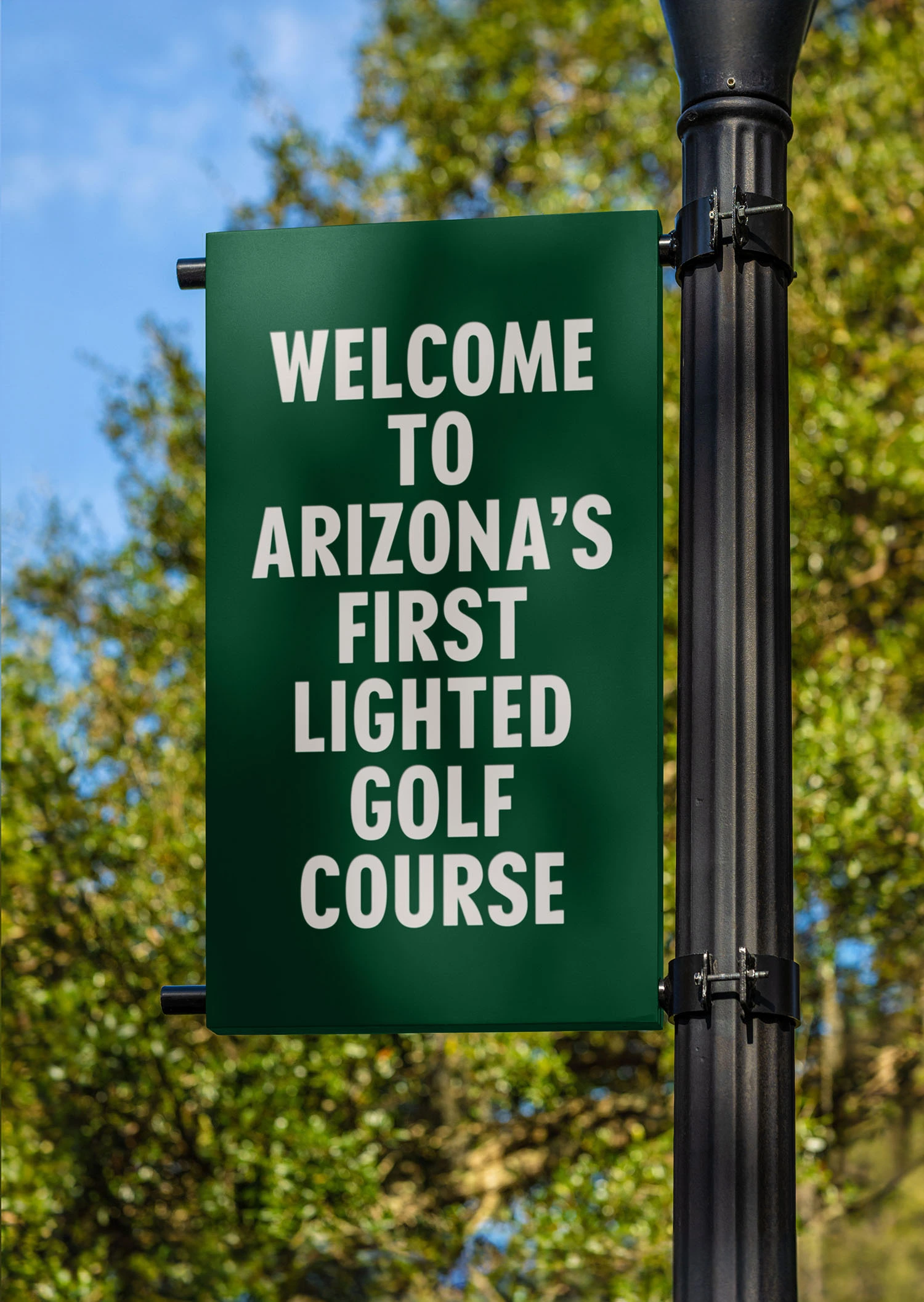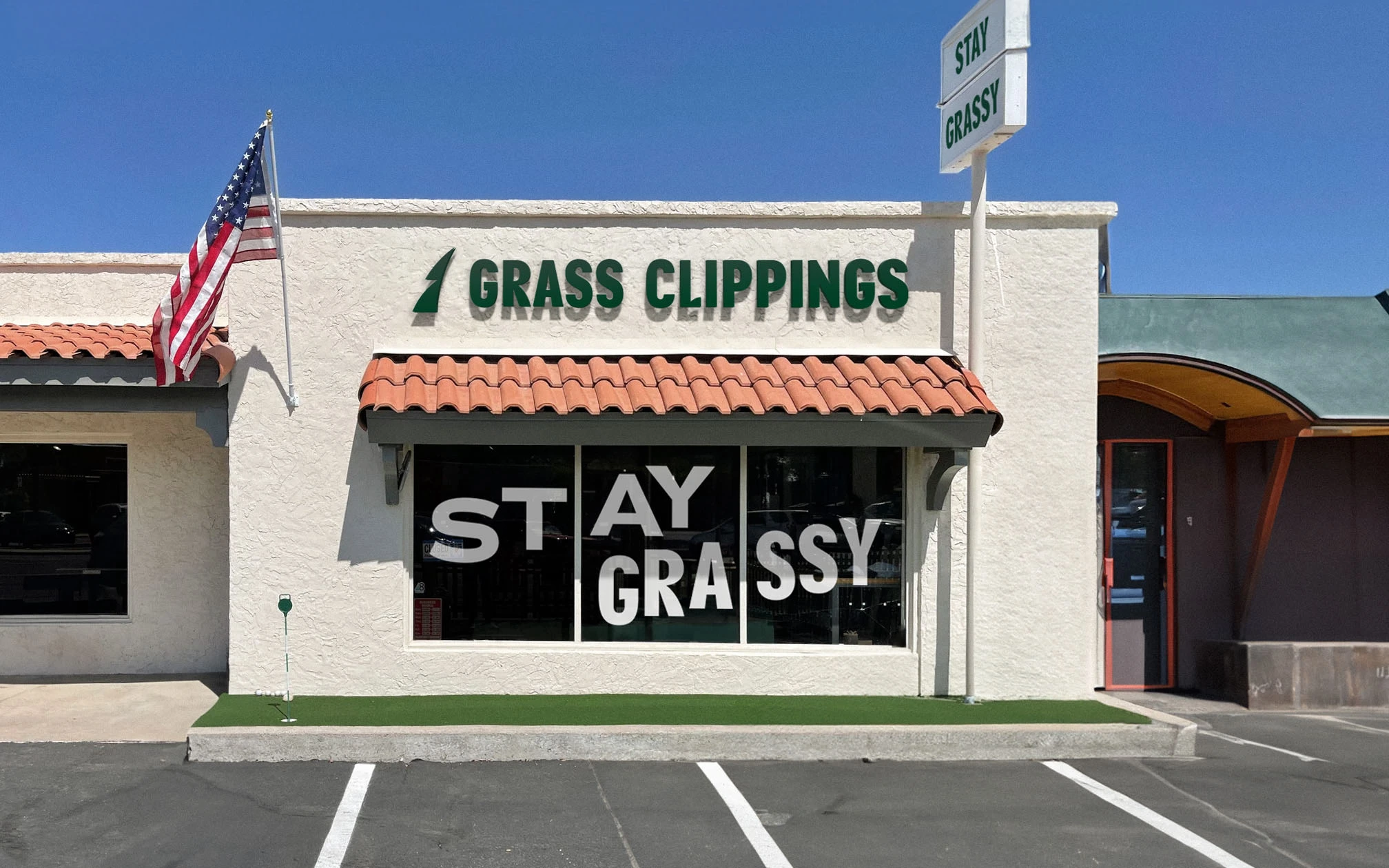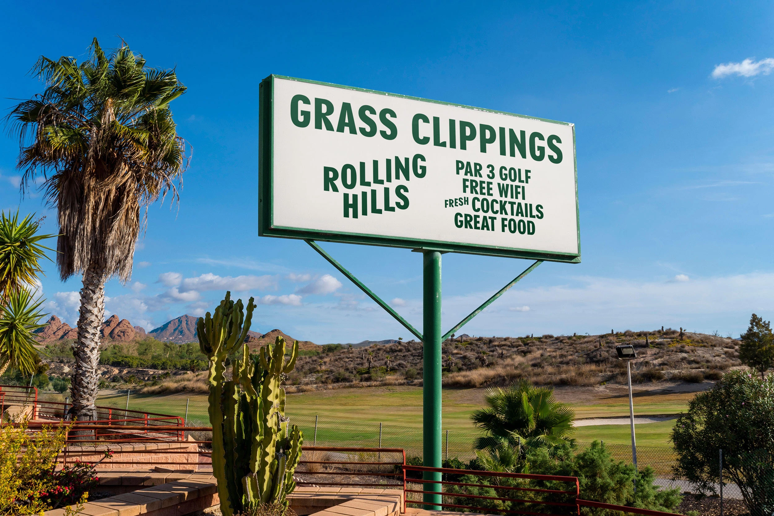 An early decision was to retain the name "Grass Clippings," a nod to its authentic origins. For the logo, we sought evolution over change, transforming a simple piece of clip-art into a bold, dynamic icon—"The Blade." This single piece of grass, bent from the force of a cut, symbolizes the energy and excitement of Grass Clippings, Arizona’s first and only fully lit par-3 golf course. The Blade inspired a distinctive wordmark with sharp edges and forward-moving curves, echoing vintage Arizonian roadside signage.